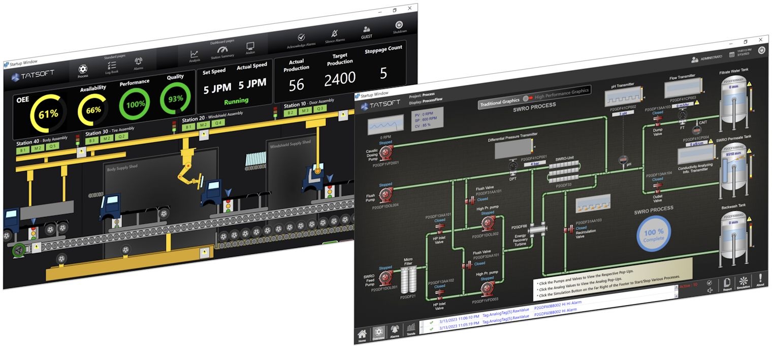 FrameworX provides two fundamental display paradigms, each optimized for different visualization needs. Canvas displays offer pixel-perfect control for process graphics, while dashboard displays provide responsive grids for data visualization. Both work within the framework to deliver the right interface for each use case.