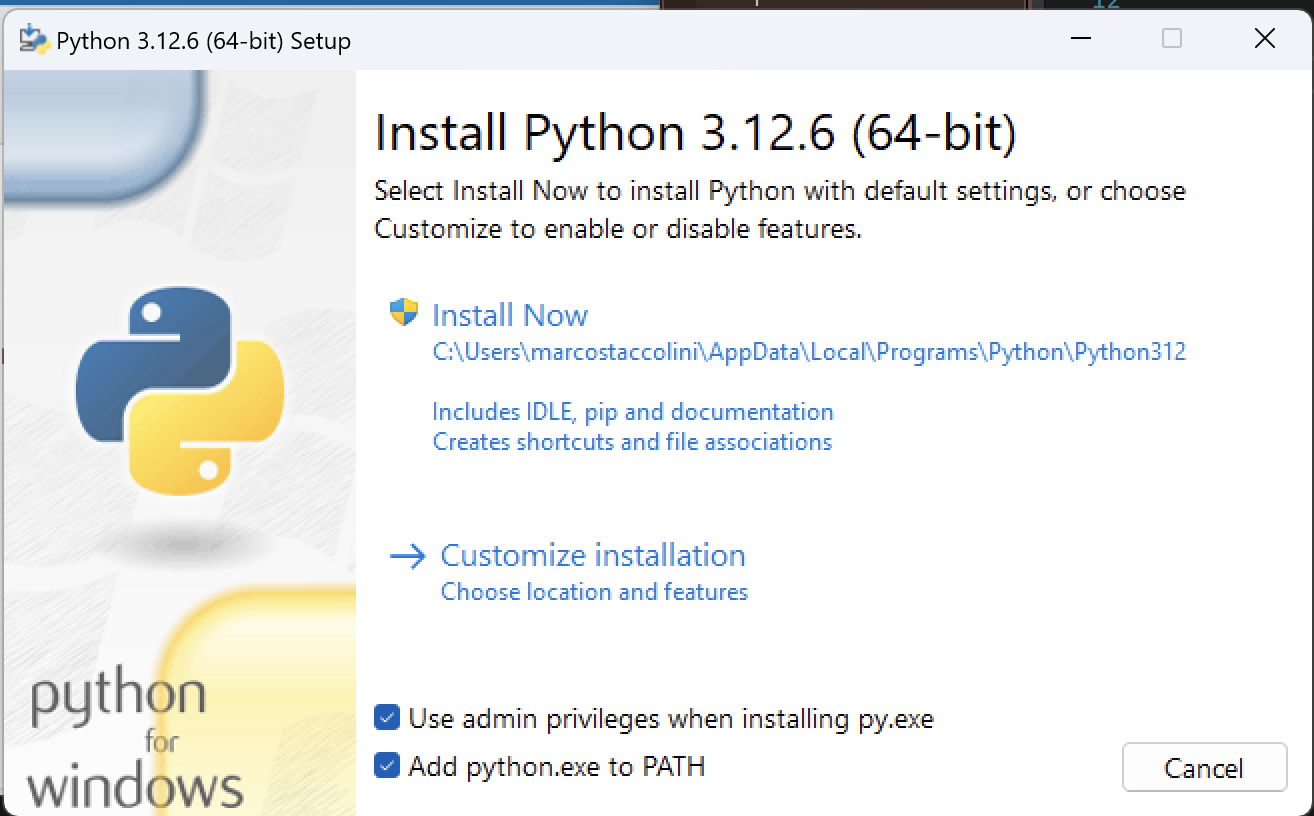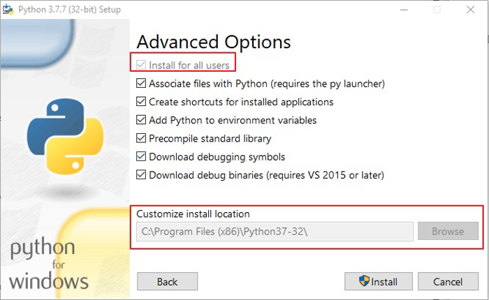 This image may be slightly different for your Python version, but always enable the options equivalent to:
