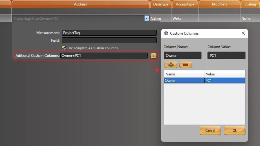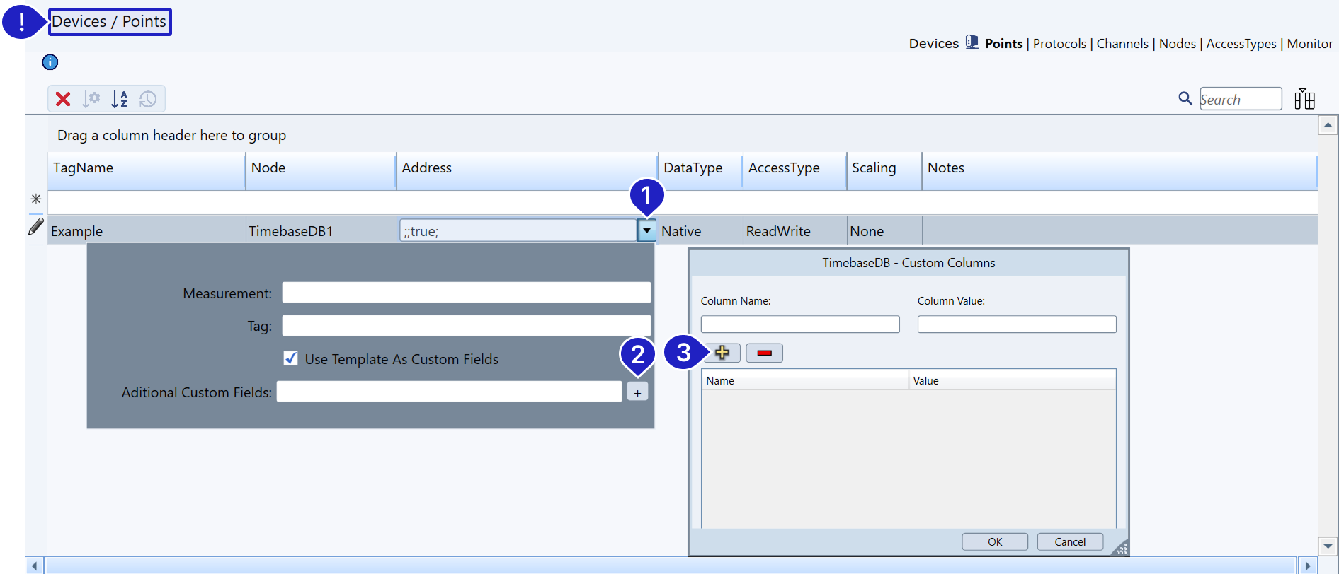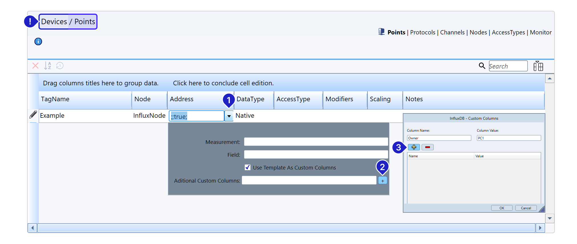Devices. InfluxDB. Points. Adress. Additional Custom Columns.png